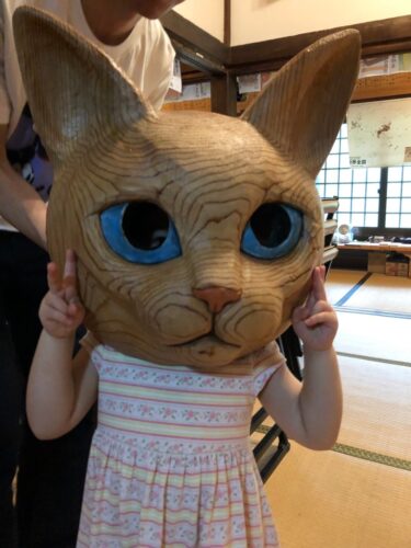 猫の置物やかぶりもので子供と沢山写真を撮ろう