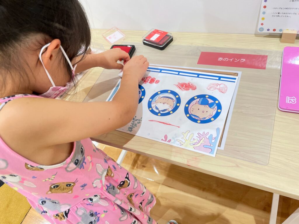 ロビーにはクラフト(工作)や色塗り等がありました。風鈴づくりに挑戦しました。