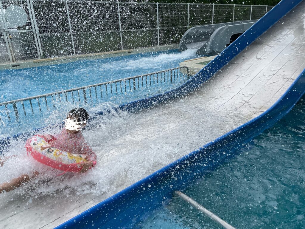 外にはウォータースライダーやちびっ子すべり台があります。すべり台は保育園くらいの小さい子供も保護者と一緒に沢山すべっていましたよ。