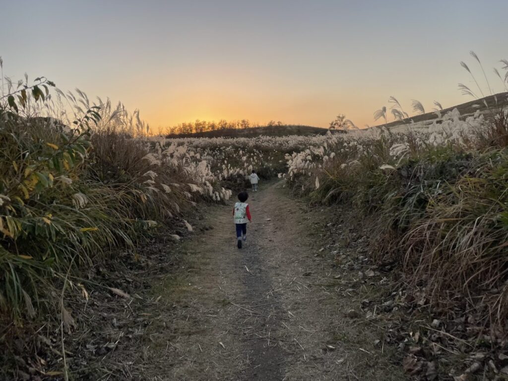 すすきで埋め尽くされた草原の道は探検をしているようで、こどもの絶好の遊び場スポットです。