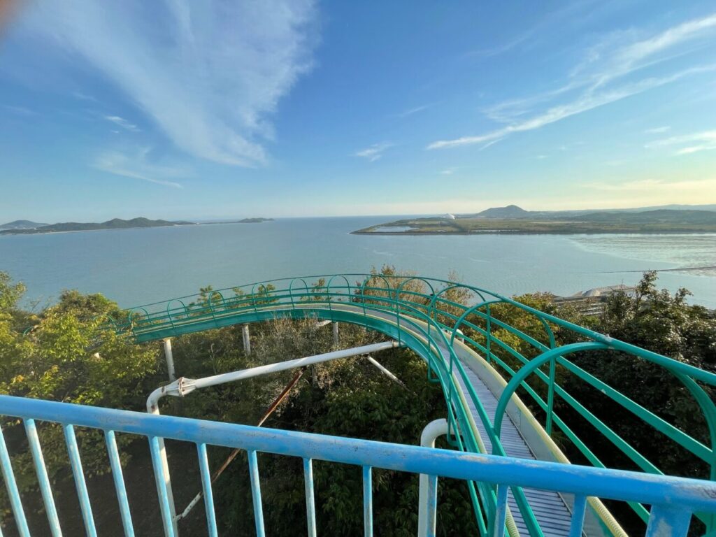瀬戸内海が一望でき、まさに絶景を楽しみ(怯え!?)ながら滑ることが出来ます(^^;)